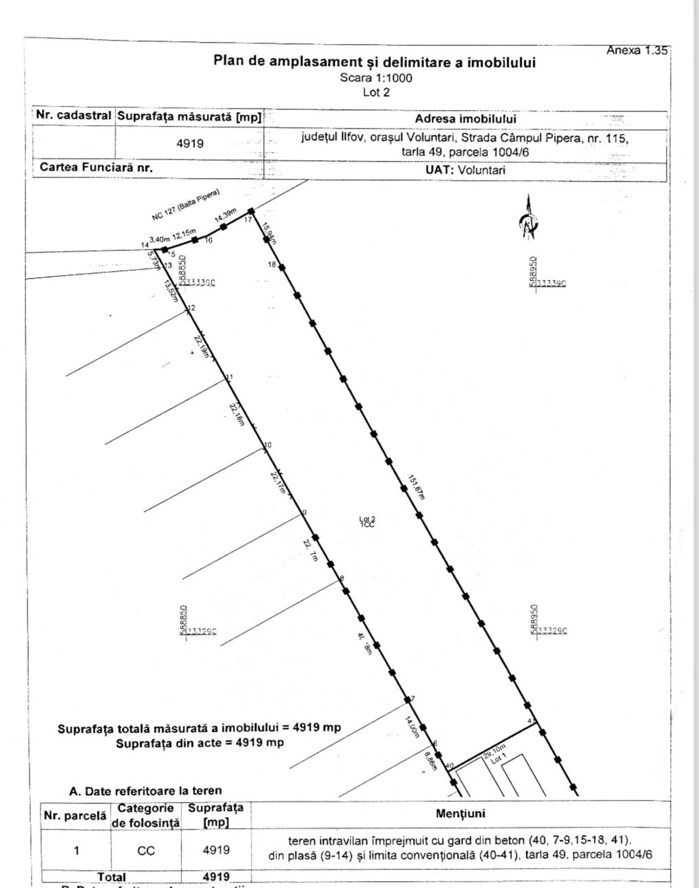 Teren in suprafață de 5000 mp, cu deschidere 30 mp la ambele capete si un drum pe lateral dreapta de 8 m latime